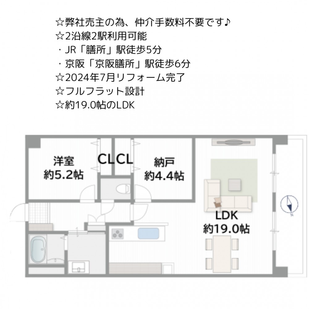セールスポイント | ☆弊社売主の為、仲介手数料不要です♪ ☆2沿線2駅利用可能 ・JR「膳所」駅徒歩5分 ・京阪「京阪膳所」駅徒歩6分 ☆2024年7月リフォーム完了 ☆フルフラット設計 ☆約19.0帖のLDK 【2024年7月リフォーム完了】 ・システムキッチン、ユニットバス、トイレ、洗面化粧台、玄関収納新調 ・和室をLDKに拡張 ・全居室クロス貼替 ・全居室フローリング張替 ・全居室照明取付 ・カップボード新設 ・納戸にエアコン設置 |