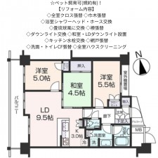 セールスポイント | ☆令和6年4月リフォーム完成済! ☆ペット飼育可(規約有)! 【リフォーム内容】 ◇全室クロス張替 ◇巾木張替 ◇浴室シャワーヘッド・ホース交換 ◇畳琉球風に交換 ◇襖張替 ◇ダウンライト交換 ◇和室・LDダウンライト設置 ◇キッチン水栓交換 ◇網戸張替 ◇洗面・トイレCF張替 ◇全室ハウスクリーニング |
