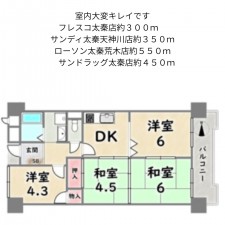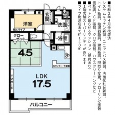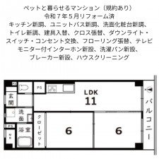 セールスポイント | ■令和2年4月全改装済 システムキッチン新調、ユニットバス新調、洗面化粧台新調、トイレ新調 給湯器新調、建具新調、間取り変更、フローリング張替、畳新調、CF張替 クロス張替、ハウスクリーニングなど ■ペットと暮らせるマンション(規約あり) ■1階店舗スーパーサンディがあります ■ライフ梅津店まで約1140m |