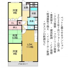 | セールスポイント | ■令和2年4月全改装済 システムキッチン新調、ユニットバス新調、洗面化粧台新調、トイレ新調 給湯器新調、建具新調、間取り変更、フローリング張替、畳新調、CF張替 クロス張替、ハウスクリーニングなど ■ペットと暮らせるマンション(規約あり) ■1階店舗スーパーサンディがあります ■ライフ梅津店まで約1140m |