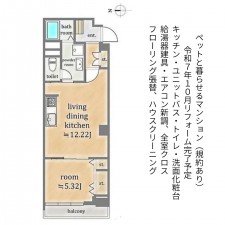 | セールスポイント | ペットと暮らせるマンション(規約あり) 現状、スケルトンなのでお好みのお部屋を作る事が出来ます |