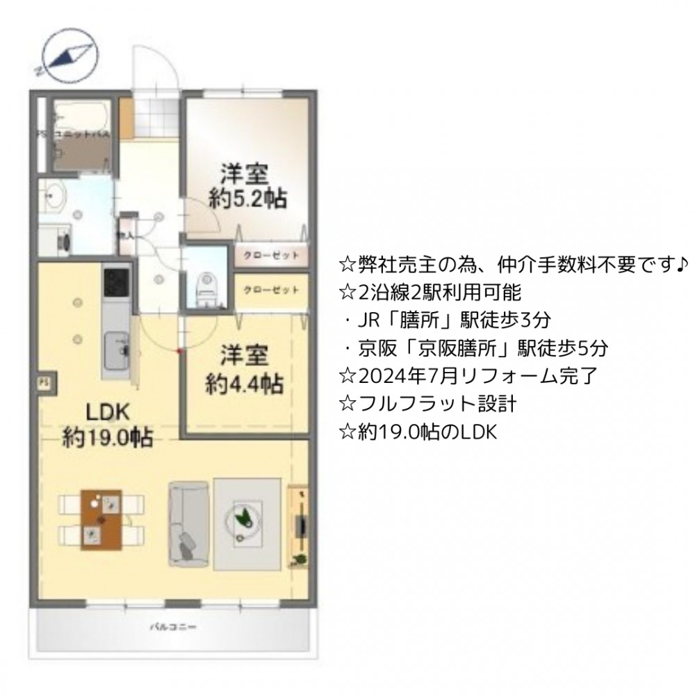 セールスポイント | ☆弊社売主の為、仲介手数料不要です♪ ☆2沿線2駅利用可能 ・JR「膳所」駅徒歩3分 ・京阪「京阪膳所」駅徒歩5分 ☆2024年7月リフォーム完了 ☆フルフラット設計 ☆約19.0帖のLDK 【2024年7月リフォーム完了】 ・システムキッチン、ユニットバス、トイレ、洗面化粧台、玄関収納新調 ・和室をLDKに拡張 ・全居室クロス貼替 ・全居室フローリング張替 ・全居室照明取付 ・カップボード新設 ・納戸にエアコン設置 |