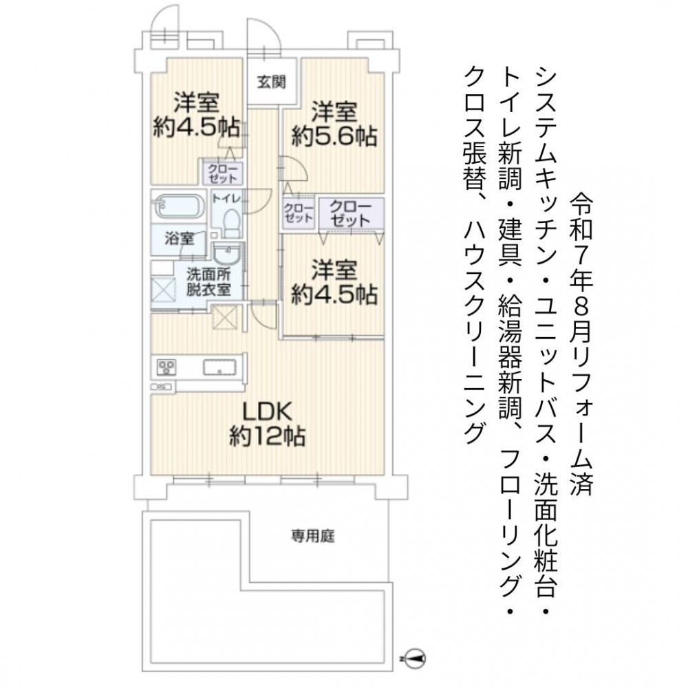 | セールスポイント | 令和7年8月リフォーム済 システムキッチン・ユニットバス・洗面化粧台・トイレ新調・建具・給湯器新調、フローリング・クロス張替、ハウスクリーニング |