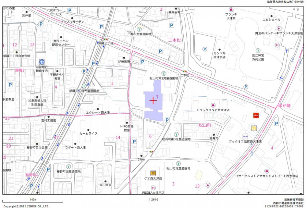 | 備考 | ※自治会費:500円/月 【周辺環境】 ・BRANCH大津京:徒歩6分(450m) ・業務スーパー西大津店:徒歩5分(350m) ・セブンイレブン大津松山町店:徒歩5分(400m) ・ドラッグユタカ西大津店:徒歩3分(200m) ・大津錦織郵便局:徒歩14分(1100m) |