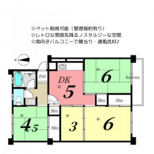 | セールスポイント | ☆ペット飼育可能(管理規約有り) ☆レトロな雰囲気残るノスタルジーな空間 ☆南向きバルコニーで陽当り・通風良好♪ 【2025年12月リフォーム済み】 ・キッチン、洗面化粧台、ユニットバス、温水洗浄便座新調 ・全室クロス、襖、CF張替 ・畳表替 |