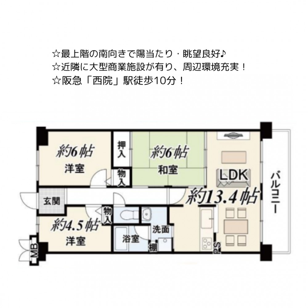 | セールスポイント | ☆最上階の南向きで陽当たり・眺望良好♪ ☆近隣に大型商業施設が有り、周辺環境充実! ☆阪急「西院」駅徒歩10分!2Wayアクセス可能 |