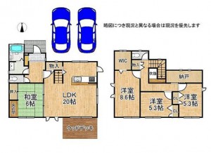 | 土地面積 | 196.97m²(約59.58坪) | 建物面積 | 130.83m²(約39.57坪) |