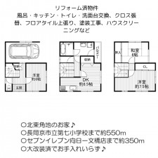 セールスポイント | リフォーム済物件 風呂・キッチン・トイレ・洗面台交換、クロス張替、フロアタイル上張り、塗装工事、ハウスクリーニングなど |