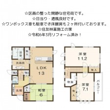 接道状況 | 状況:二方(除角地)西側 幅員6m 公道 南側 幅員6m 公道 | ||