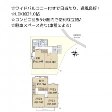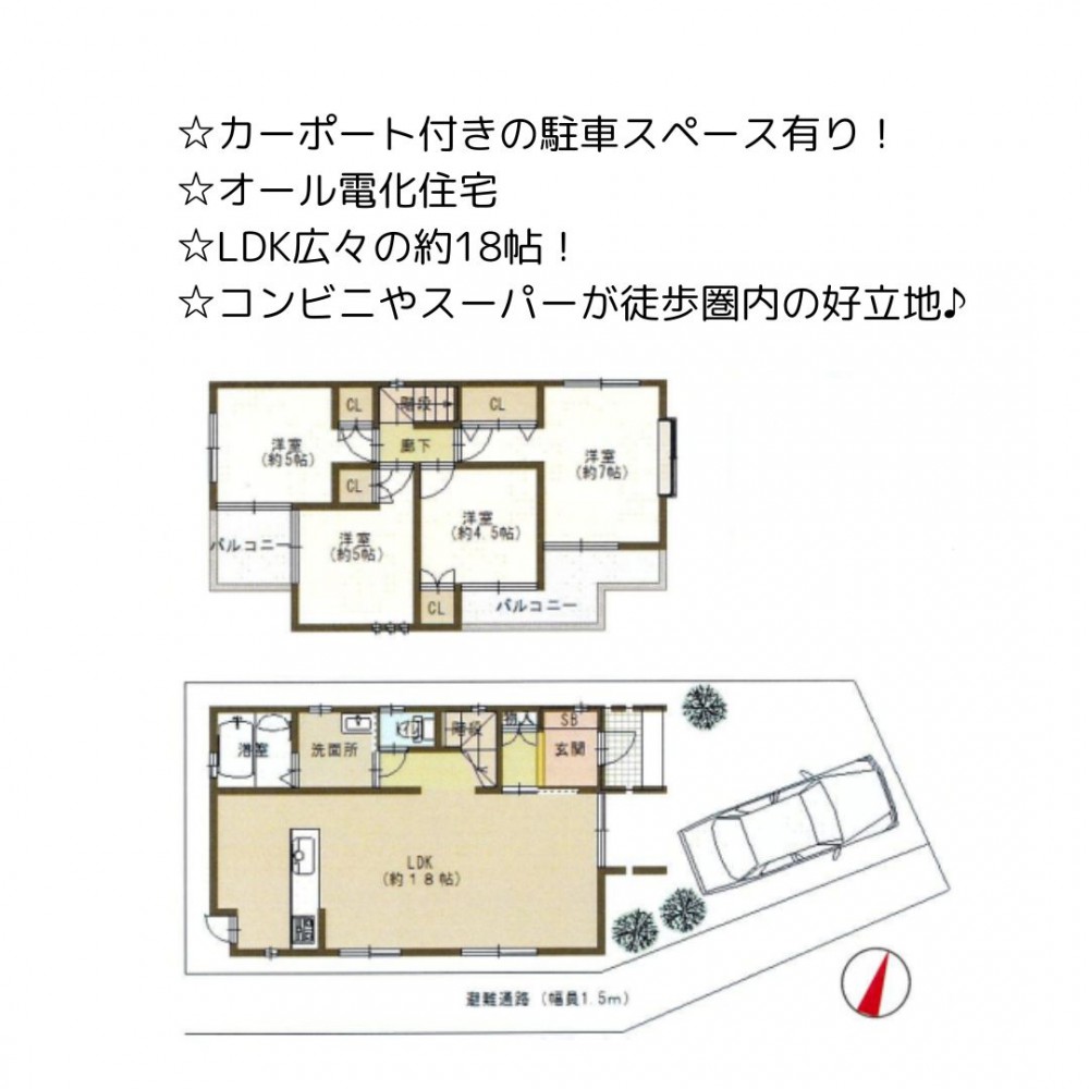 セールスポイント | ☆カーポート付きの駐車スペース有り! ☆オール電化住宅 ☆LDK広々の約18帖! ☆コンビニやスーパーが徒歩圏内の好立地♪ |