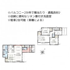 セールスポイント | ☆LDK広々19.8帖♪ ☆南向きバルコニーで陽当たり・通風良好 ☆駐車2台可能(車両による) ☆充実した収納スペース |