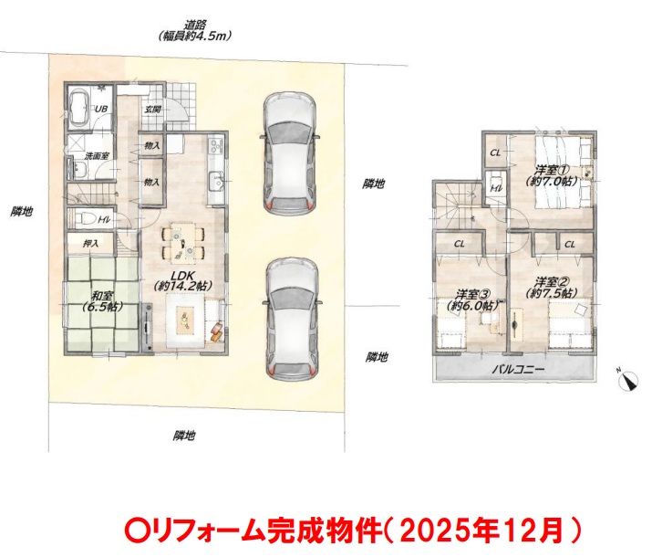 | 備考 | 〇リフォーム完成物件(2025年12月) ・システムキッチン新調(食洗機、浄水器)・ユニットバス新調(追い焚き)・洗面化粧台新調・トイレ新調・洗濯パン、洗濯水栓新調・全室クロス貼替・CF貼替・バルコニー防水塗装・照明設備新調・スイッチカバー取替(全箇所)・畳表替え・襖、障子張替・ハウスクリーニング等 ● 司法書士売主指定・現況優先 |