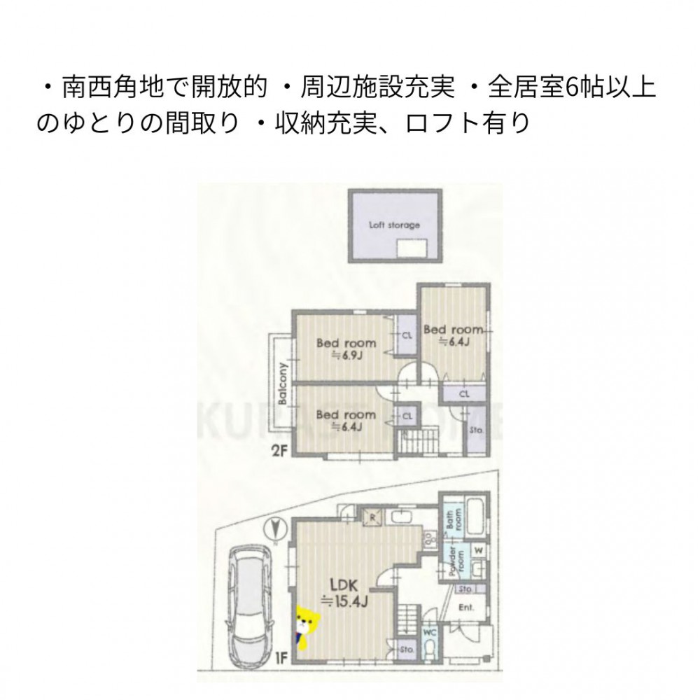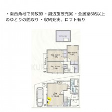 セールスポイント | ・南西角地で開放的 ・周辺施設充実 ・全居室6帖以上のゆとりの間取り ・収納充実、ロフト有り◎ |
