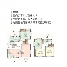 セールスポイント | ☆角地 ☆室内丁寧にご使用です! ☆手続完了後、即入居可!! ☆光風台住宅前バス停まで徒歩約1分 |