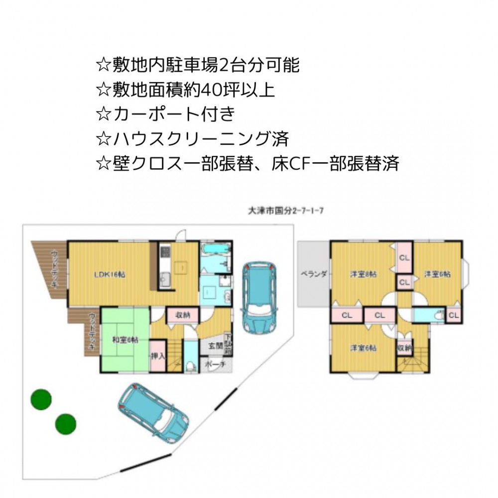 | セールスポイント | ☆敷地内駐車場2台分可能 ☆敷地面積約40坪以上 ☆カーポート付き ☆ハウスクリーニング済 ☆壁クロス一部張替、床CF一部張替済 |