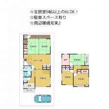 セールスポイント | ☆全居室6帖以上の6LDK! ☆駐車スペース有り ☆周辺環境充実♪ 【2025年5月リフォーム済み】 ・クロス貼替 ・フロアタイル、クッションフロア、襖張替 ・畳表替 ・障子貼替 ・洗面化粧台新調 ・ハウスクリーニング |