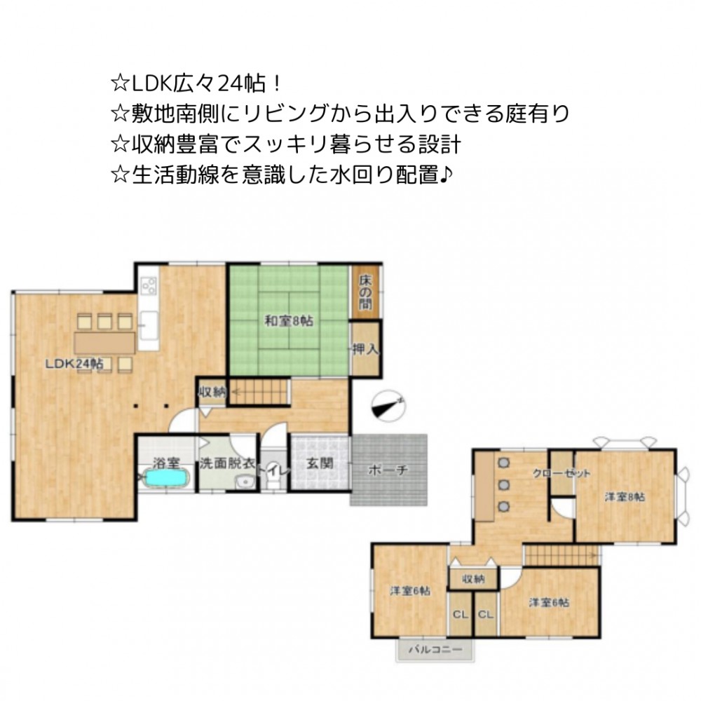 | セールスポイント | ☆LDK広々24帖! ☆敷地南側にリビングから出入りできる庭有り ☆収納豊富でスッキリ暮らせる設計 ☆生活動線を意識した水回り配置♪ 【2025年11月リフォーム完成予定】 ・キッチン、ユニットバス、洗面所、便器、建具全交換 ・防蟻工事 ・壁・天井クロス張替 ・フローリング仕上げ ・外壁塗装 ・庭木剪定 ・屋根クリーニング |