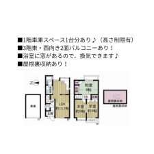 | セールスポイント | ■車2台駐車可能 ■全居室6帖 ■天井収納庫有 ■南向きベランダ |