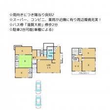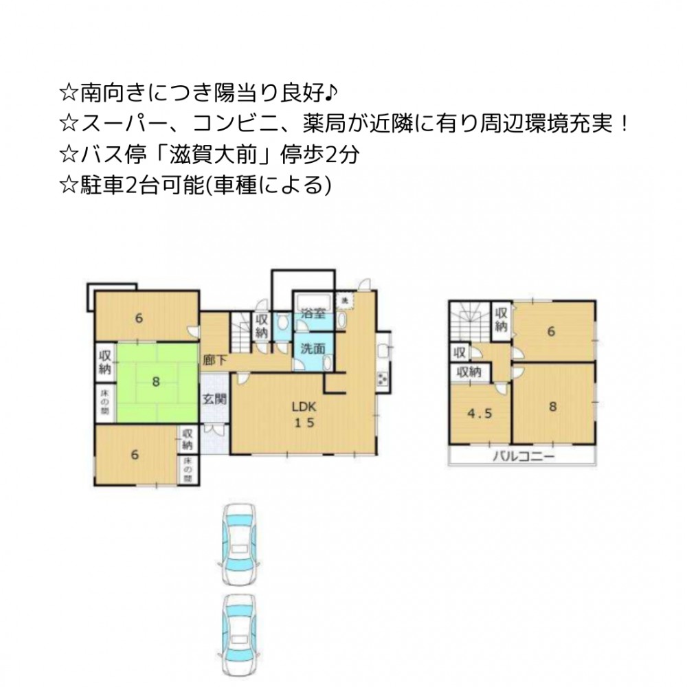 | セールスポイント | ☆南向きにつき陽当り良好♪ ☆スーパー、コンビニ、薬局が近隣に有り周辺環境充実! ☆バス停「滋賀大前」停歩2分 ☆駐車2台可能(車種による) |