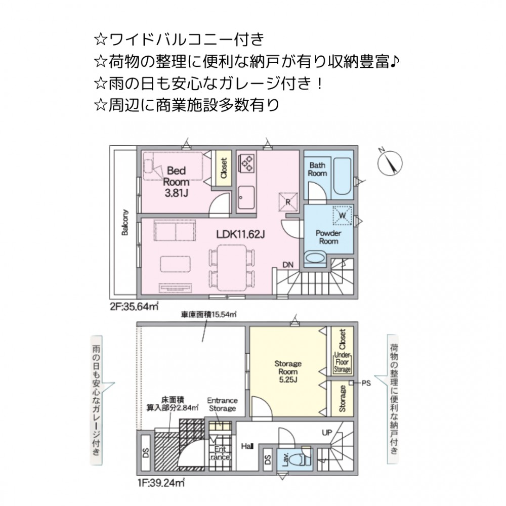 | セールスポイント | ☆ワイドバルコニー付き ☆荷物の整理に便利な納戸が有り収納豊富♪ ☆雨の日も安心なガレージ付き! ☆周辺に商業施設多数有り |