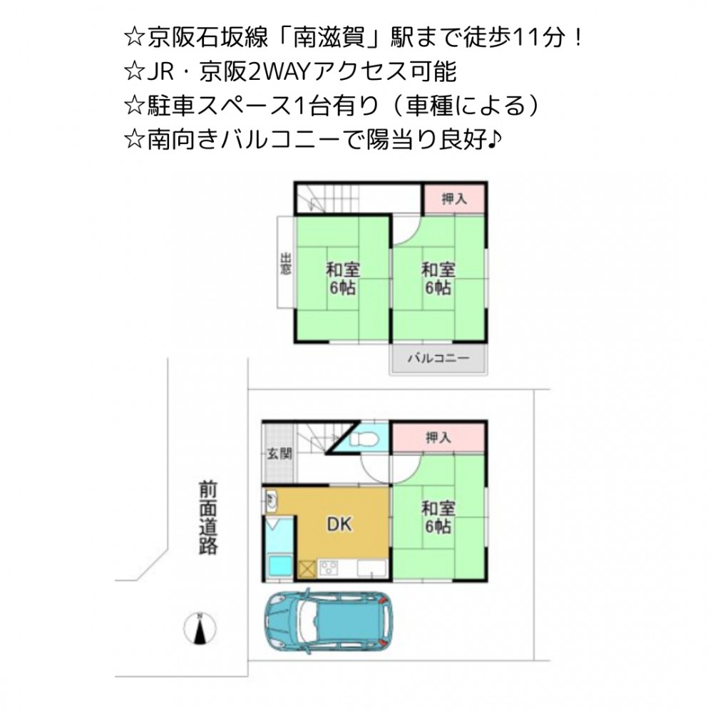 | セールスポイント | ☆京阪石坂線「南滋賀」駅まで徒歩11分! ☆JR・京阪2WAYアクセス可能 ☆駐車スペース1台有り(車種による) ☆南向きバルコニーで陽当り良好♪ |