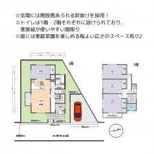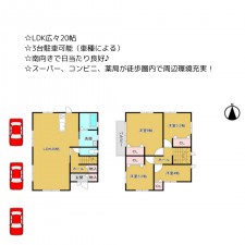 | セールスポイント | ☆LDK広々20帖 ☆3台駐車可能(車種による) ☆南向きで日当たり良好♪ ☆スーパー、コンビニ、薬局が徒歩圏内で周辺環境充実! |