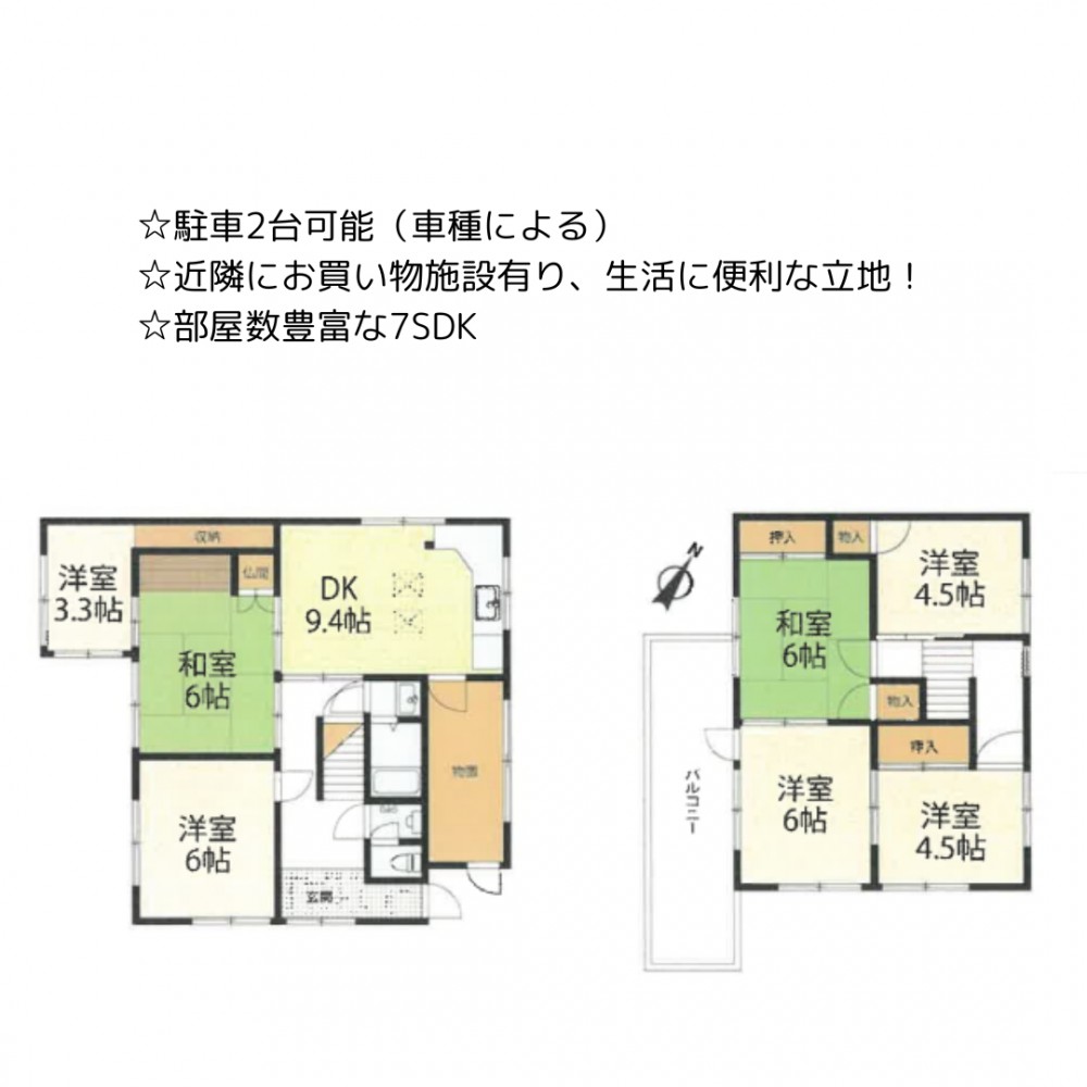 | セールスポイント | ☆駐車2台可能(車種による) ☆近隣にお買い物施設有り、生活に便利な立地! ☆部屋数豊富な7SDK |