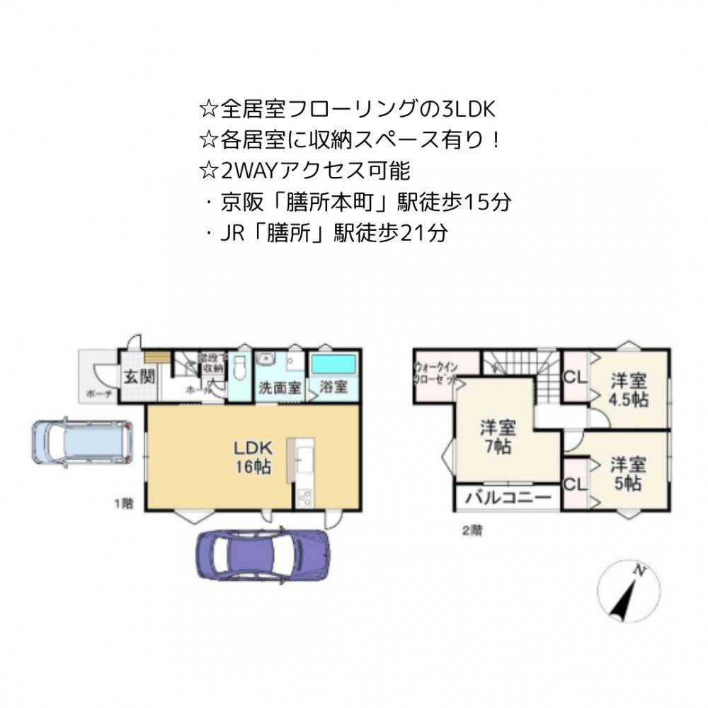 | セールスポイント | ☆全居室フローリングの3LDK ☆各居室に収納スペース有り! ☆2WAYアクセス可能 ・京阪「膳所本町」駅徒歩15分 ・JR「膳所」駅徒歩21分 |