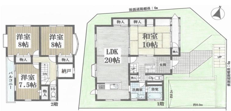 | 接道状況 | 北側 幅員6m 東側 幅員6m | ||