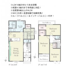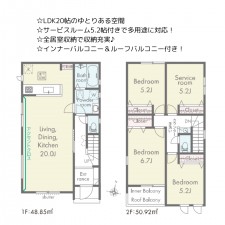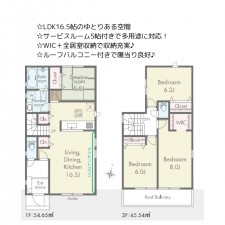 | セールスポイント | ☆LDK16帖のゆとりある空間 ☆サービスルーム5帖付きで多用途に対応 ☆WIC+各室収納で収納充実! ☆インナーバルコニー付きで雨の日でも安心♪ |