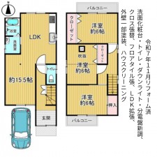 | セールスポイント | 令和7年11月リフォーム済 洗面化粧台・トイレ・ダウンライト・分電盤新調、クロス張替、フロアタイル張、LDK拡張、外壁一部塗装、ハウスクリーニング |