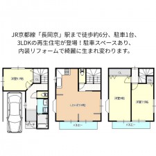 | セールスポイント | JR京都線「長岡京」駅まで徒歩約6分、駐車1台、3LDKの再生住宅が登場!駐車スペースあり、内装リフォームで綺麗に生まれ変わります。 | ||