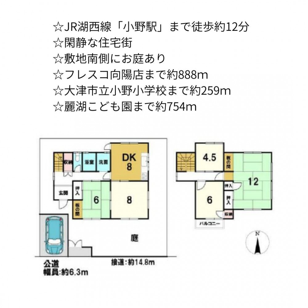 | セールスポイント | ☆JR湖西線「小野駅」まで徒歩約12分 ☆閑静な住宅街 ☆敷地南側にお庭あり |