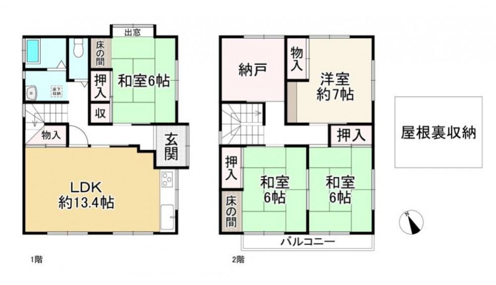 | 備考 | ●リフォーム歴あり : 【2017年3月】浴室ユニットバス新調、トイレ・洗面台交換 ●南東北東向き角地 ●南西向きバルコニーあり ●床下・屋根裏収納あり ●駐車場 1台分あり(駐車台数は車種による) | ||