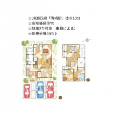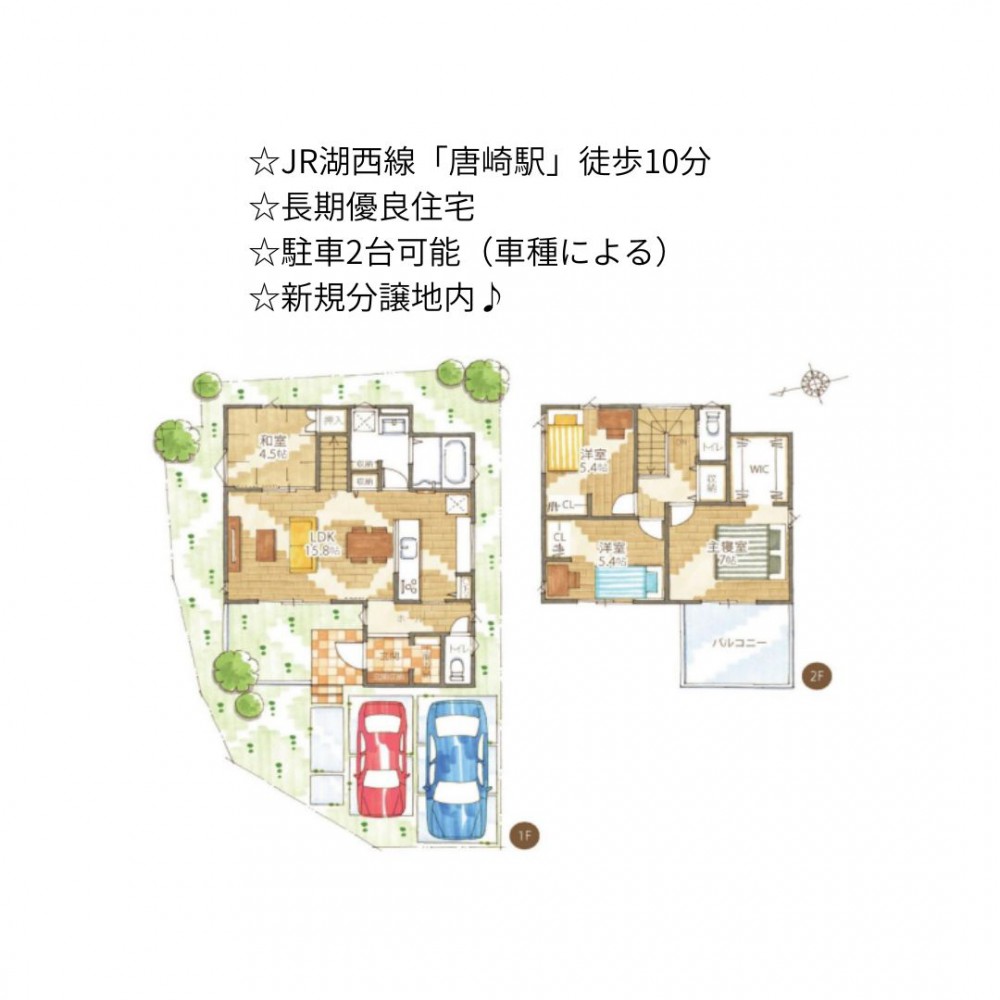 | セールスポイント | ☆JR湖西線「唐崎駅」徒歩10分 ☆長期優良住宅 ☆駐車2台可能(車種による) ☆新規分譲地内♪ |