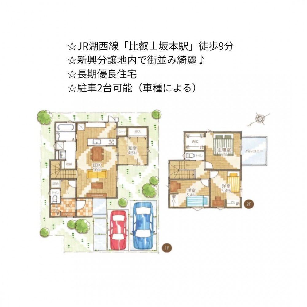 | セールスポイント | ☆JR湖西線「比叡山坂本駅」徒歩9分 ☆新興分譲地内で街並み綺麗♪ ☆長期優良住宅 ☆駐車2台可能(車種による) |