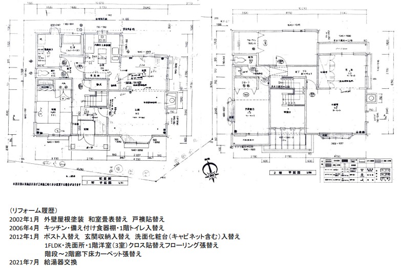| 備考 | 現状渡し・契約不適合責任免責・入居中 2026年5月末日退去予定 暖炉用煙突有り 一部増築撤去跡あり (リフォーム履歴) 2002年1月 外壁屋根塗装 和室畳表替え 戸襖貼替え/2006年4月 キッチン・備え付け食器棚・1階トイレ入替え/2012年1月 ポスト入替え 玄関収納入替え 洗面化粧台(キャビネット含む)入替え・1FLDK・洗面所・1階洋室(3室)クロス貼替えフローリング張替え・階段~2階廊下床カーペット張替え/2021年7月 給湯器交換 |