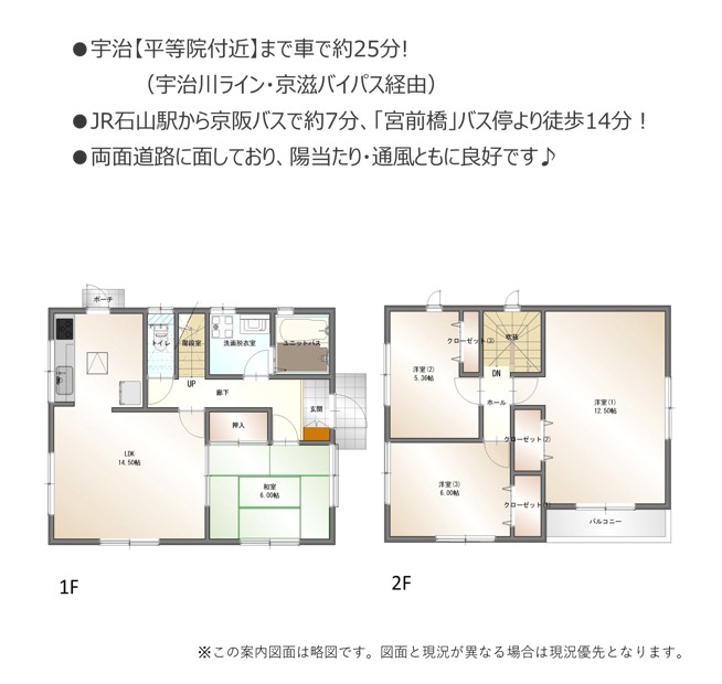 | セールスポイント | 宇治(平等院付近)まで車で約25分(宇治川ライン・京滋バイパス経由)! JR石山駅から京阪バスで約7分、「宮前橋」バス停より徒歩14分! 車で宇治方面へ30分以内と、京都の奥座敷のような落ち着いた立地です! 都心では叶わない広い敷地で、ゆとりある暮らしを実現できます! 自然が身近にあり、のびのびと子育てができる静かな住宅街! 南郷エリアに近く、京都・大阪・三重へのアクセスも良好です! 両面道路に面しており、陽当たり・通風ともに良好です! |