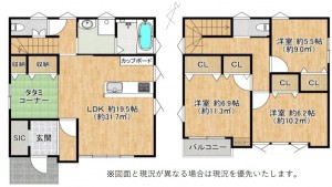 | 土地面積 | 177.46m²(約53.68坪) | 建物面積 | 105.37m²(約31.87坪) |