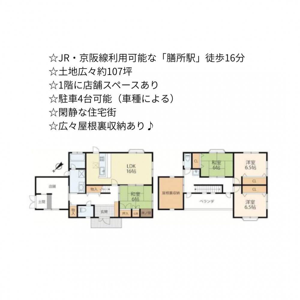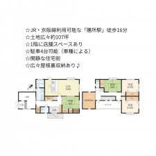 | セールスポイント | ☆JR・京阪線利用可能な「膳所駅」徒歩16分 ☆土地広々約107坪 ☆1階に店舗スペースあり ☆駐車4台可能(車種による) ☆閑静な住宅街 ☆広々屋根裏収納あり♪ |