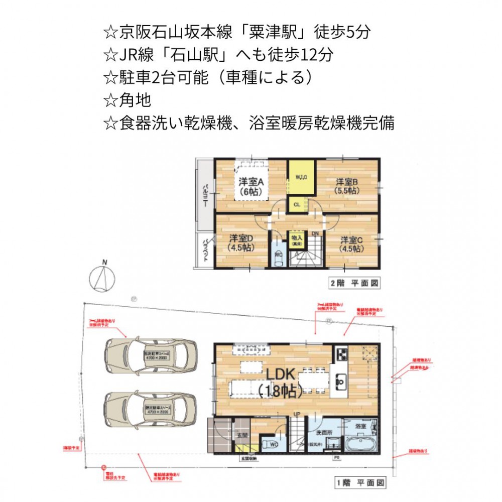| セールスポイント | ☆京阪石山坂本線「粟津駅」徒歩5分 ☆JR線「石山駅」へも徒歩12分 ☆駐車2台可能(車種による) ☆角地 ☆食器洗い乾燥機、浴室暖房乾燥機完備 |