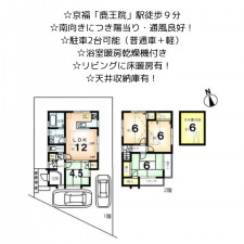 | 備考 | 【周辺環境】 ・いかりスーパーマーケットライクス常盤店:徒歩23分(1785m) ・セブンイレブン京都福王子店:徒歩15分(1160m) ・スギ薬局常盤店:徒歩22分(1751m) ・御室幼稚園:徒歩15分(1194m) ・京都宇多野郵便局:徒歩12分(921m) |