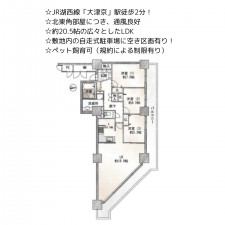 | 備考 | ※ガス漏警報機積立金:300円 【周辺環境】 ・ファミリーマート大津京駅前店 約60m ・バロー茶が崎店 約530m ・ブランチ大津京 約810m ・長等小学校 約1590m ・皇子山中学校 約410m |